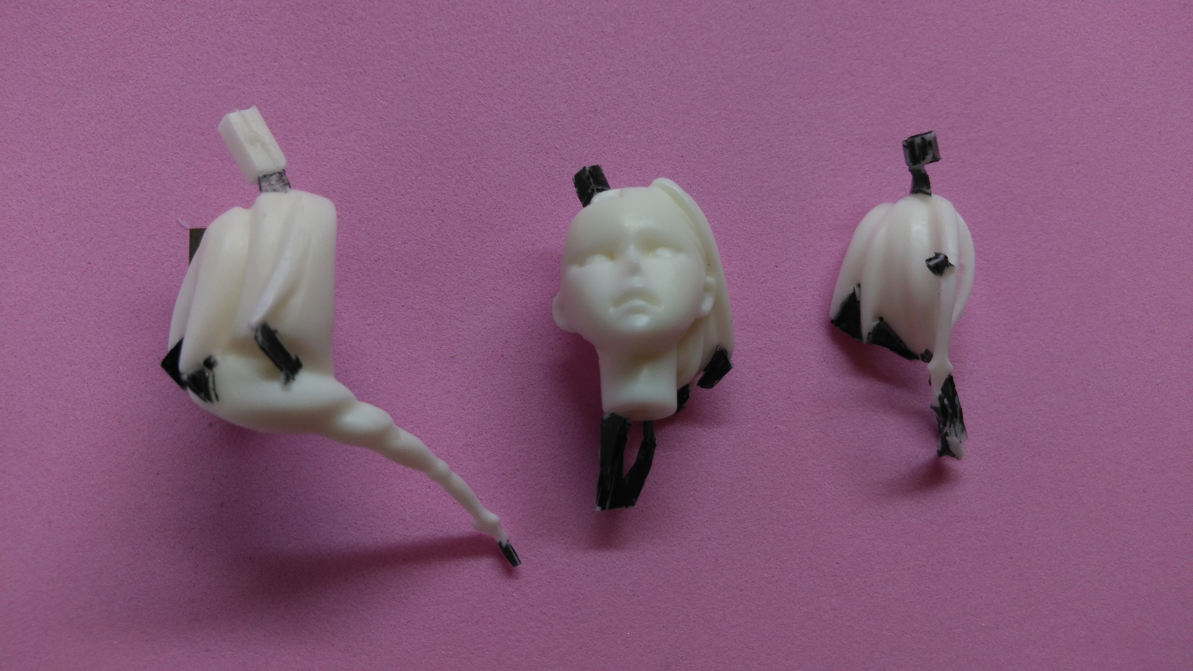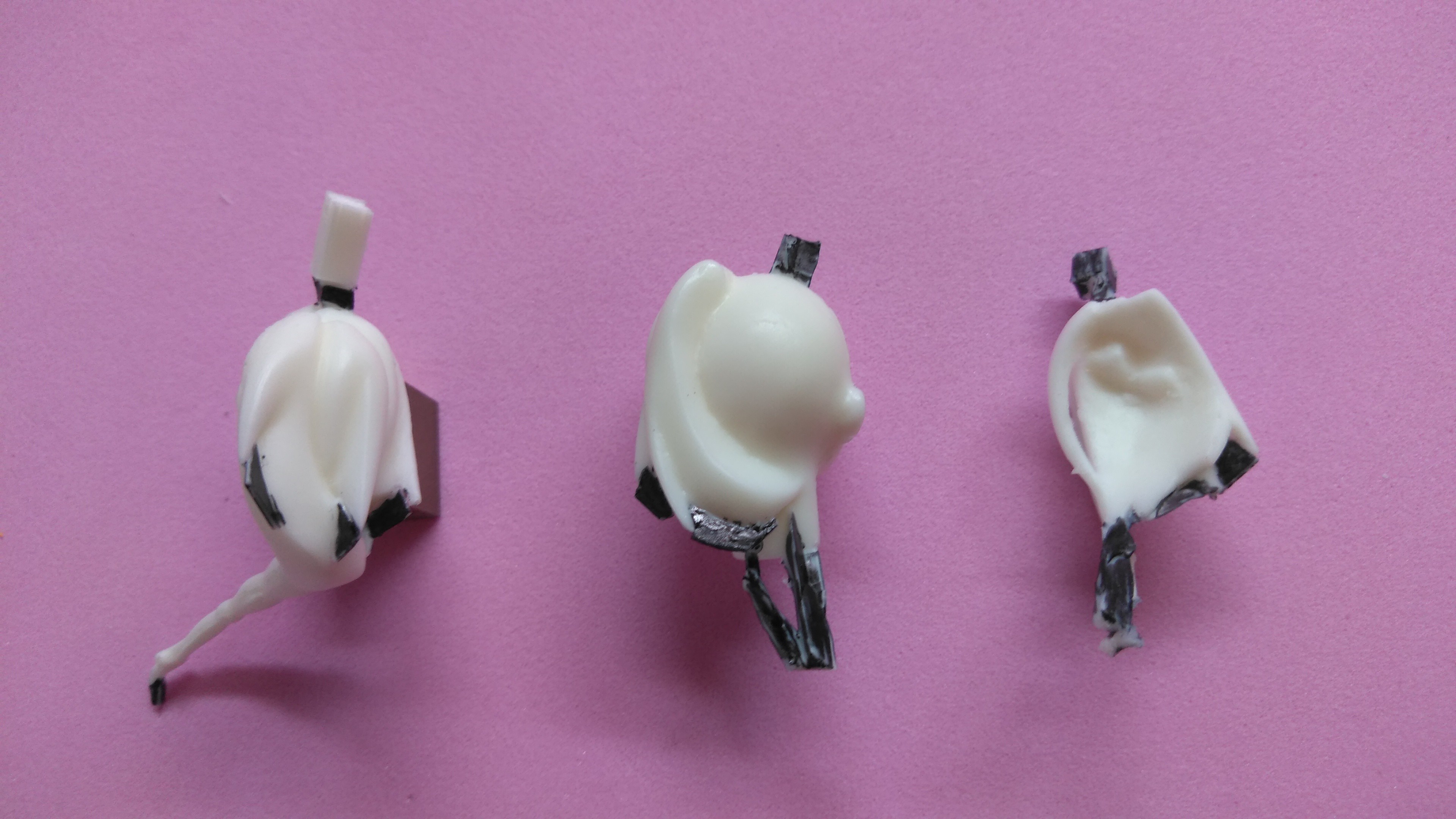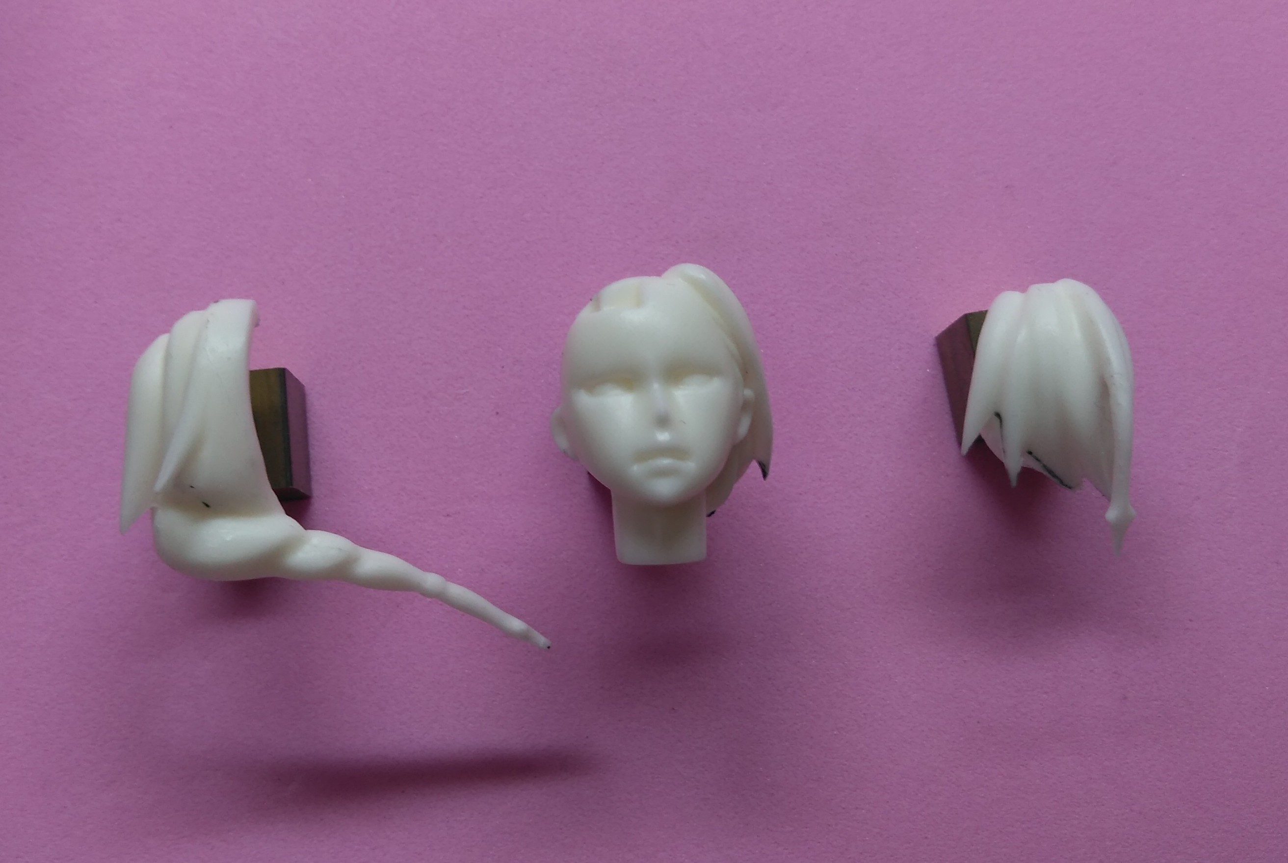 薄いパーツなので、後から穴を開けて真鍮線を通すのは余りにも危険で困難なので、真鍮線をインサートし注型しました。