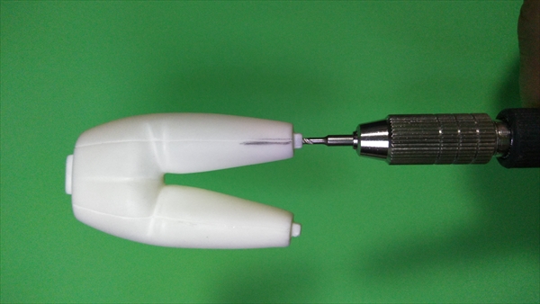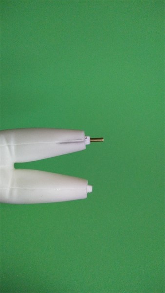 インサート注型の都合上、ブレ防止の為に羽根の先側に真鍮線が飛び出した状態になっていますので、余分な所をカットしてゆきます。