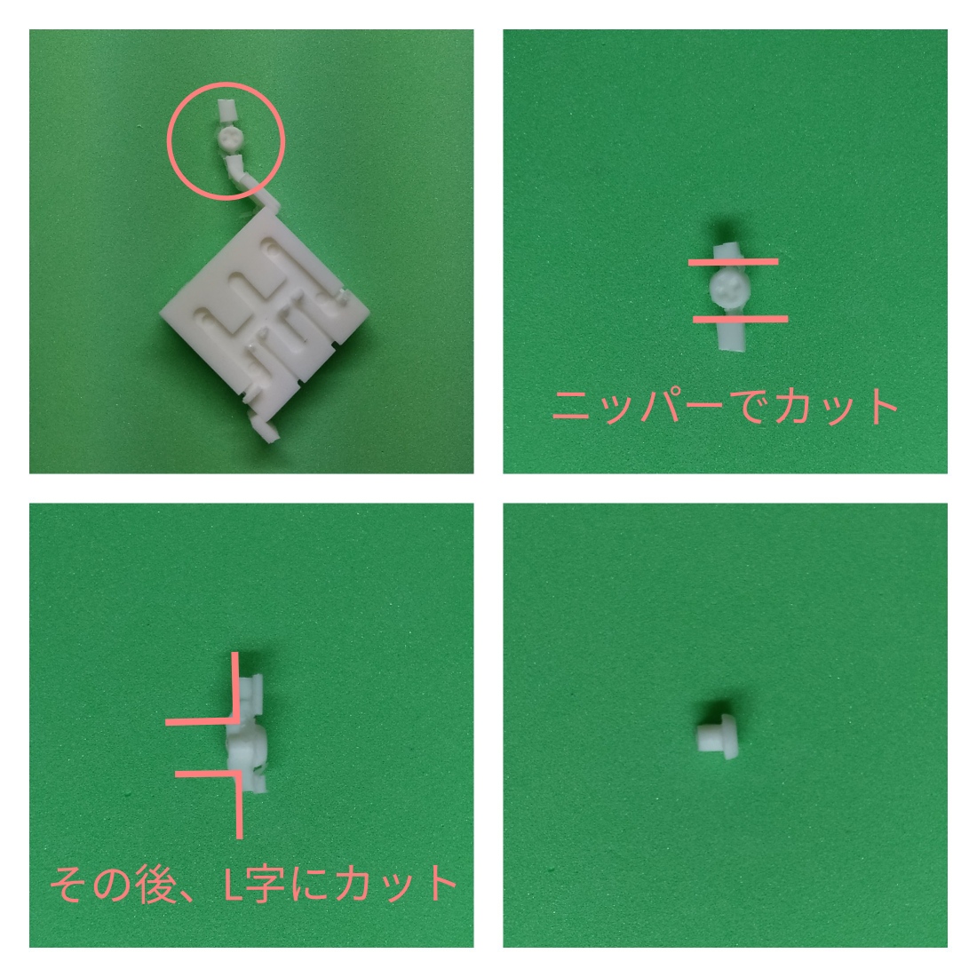 差し込んだフタパーツを取る時は、押しピン等で裏側から隙間に針を差し込んで取ります。