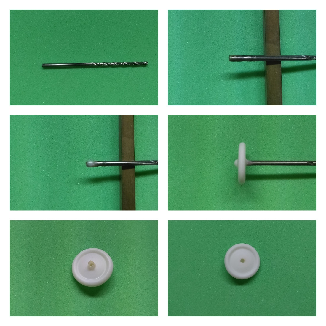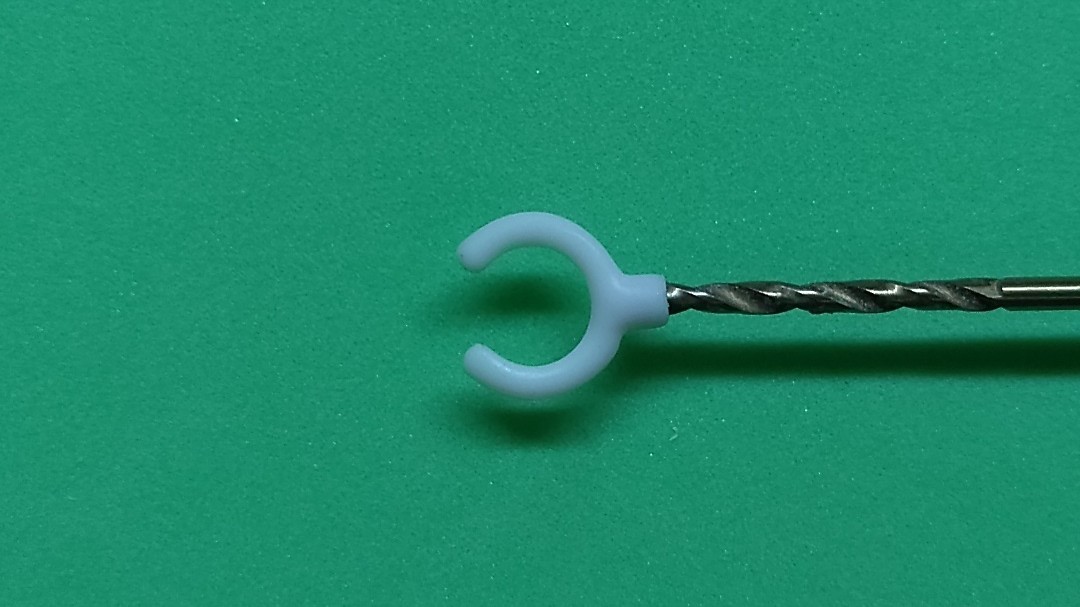 2ミリドリルで少し穴をあけた後、1,9ミリドリルの後ろ側に離型剤を塗り、