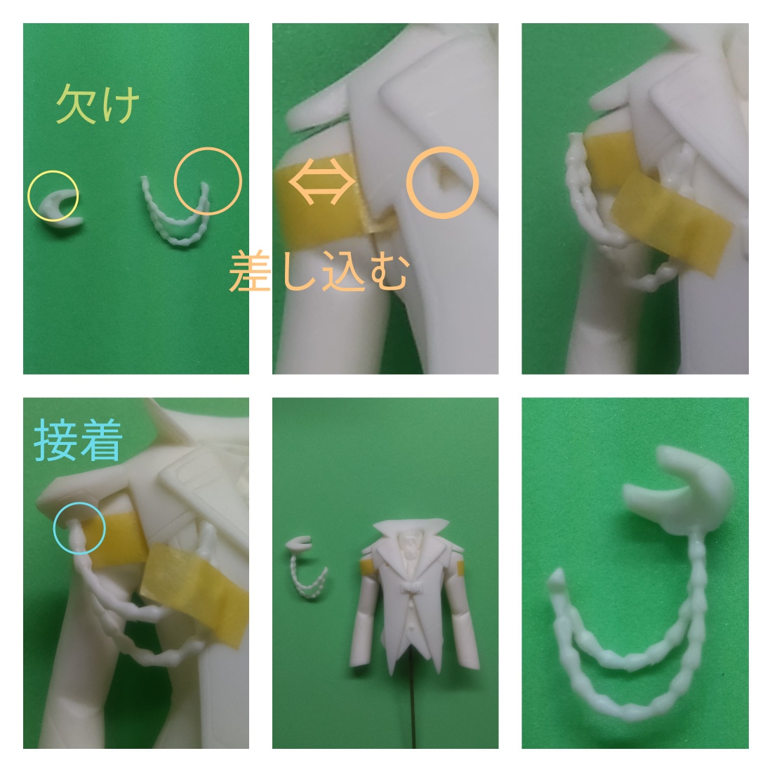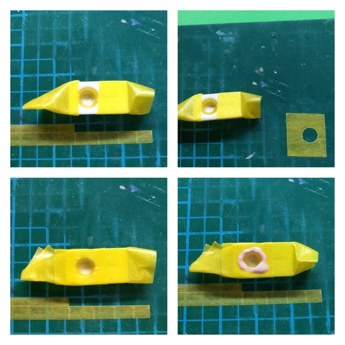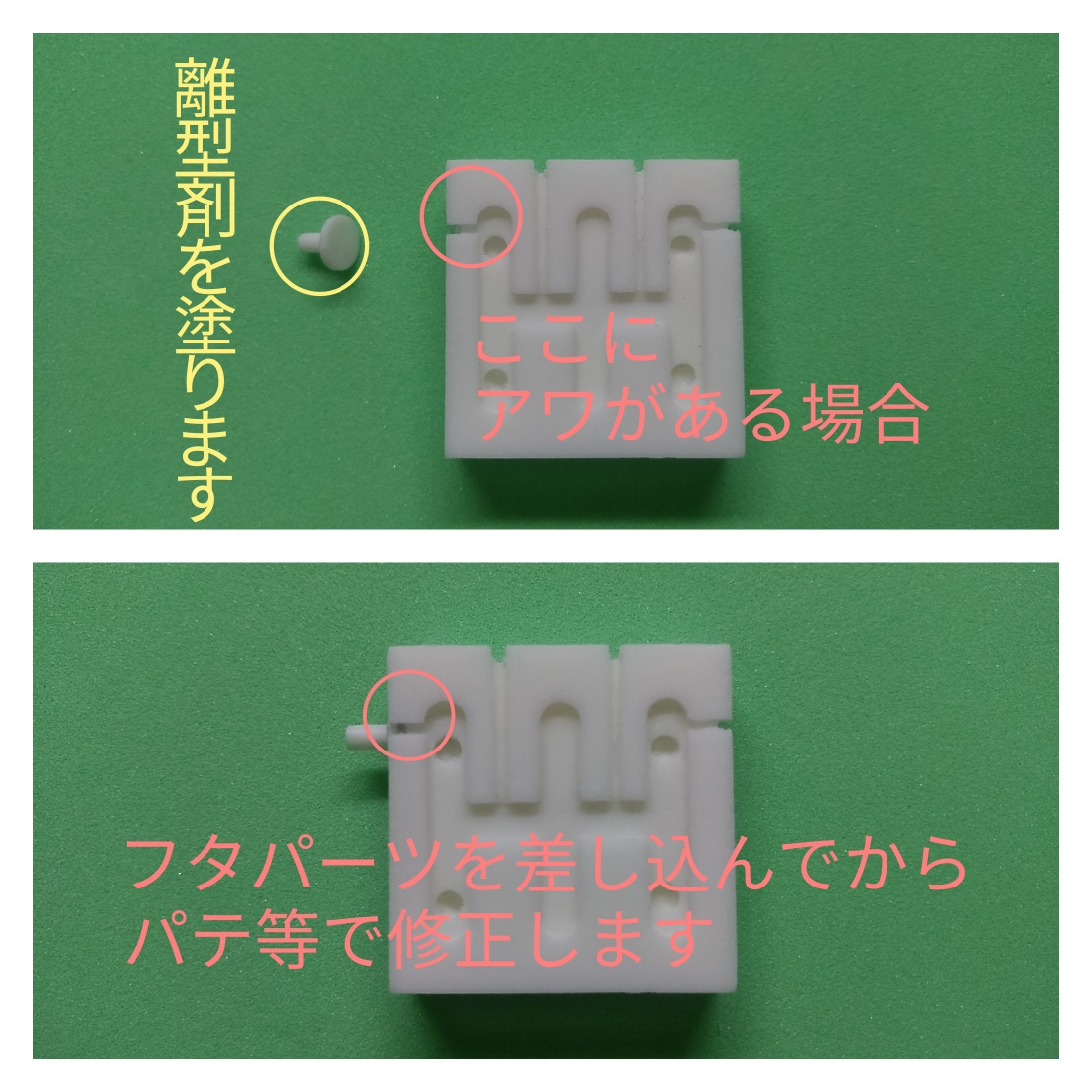 フタパーツに表裏に離型剤を塗ってから差し込んだ後、パテやシアノン等で補修します。