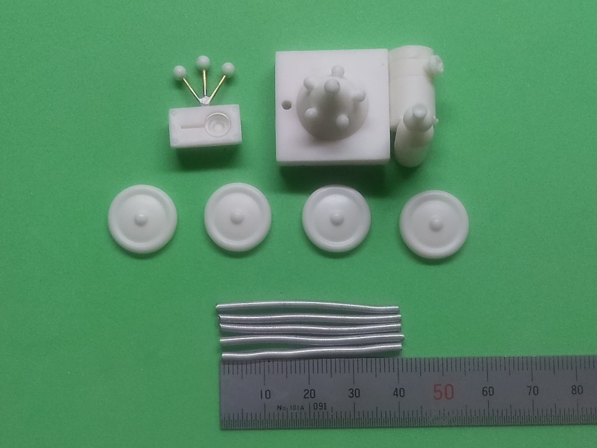 マジックハンドと車輪パーツです。マジックハンドパーツの付け根部分は、シリコンの切り方ミスしてしまい、形状を整えるのが少し面倒な物もありますので、ご注意を…。